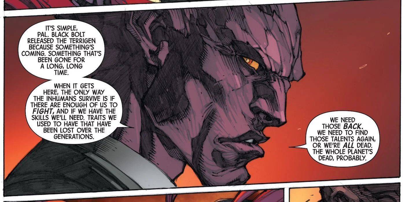 当他暴露在泰瑞根雾中时,他获得了超级力量。然而,他真正的力量是来源于他和所有的异人祖先同胞之间的一种奇怪的联系,这些赋予他共享与先祖的知识和记忆的能力。同时他是个异人的犯罪头目,可以作为卡玛拉·汗的初级敌人。