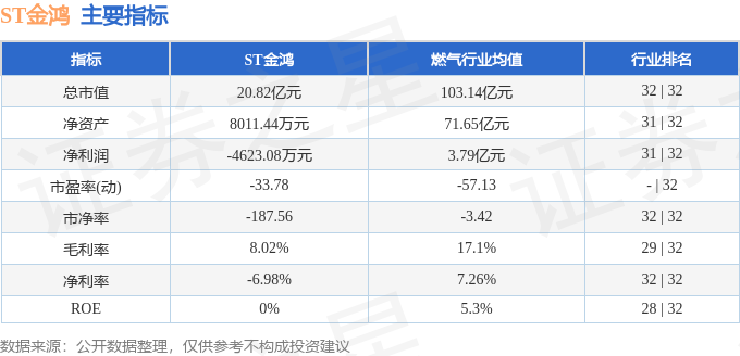 ST金鸿2025年三季报显示,前三季度公司主营收入9.1亿元,同比下降4.38%;归母净利润-4623.08万元,同比上升51.43%;扣非净利润-3521.23万元,同比上升63.26%;其中2025年第三季度,公司单季度主营收入2.69亿元,同比上升2.45%;单季度归母净利润-1599.84万元,同比下降525.82%;单季度扣非净利润-1296.29万元,同比下降408.86%;负债率96.66%,投资收益463.36万元,财务费用3794.71万元,毛利率8.02%。ST金鸿(000669)主营业务:天然气综合利用业务,包括气源开发与输送、长输管网建设与管理、城市燃气经营与销售、车用加气站投资与运营、LNG点供、分布式能源项目开发与建设等。